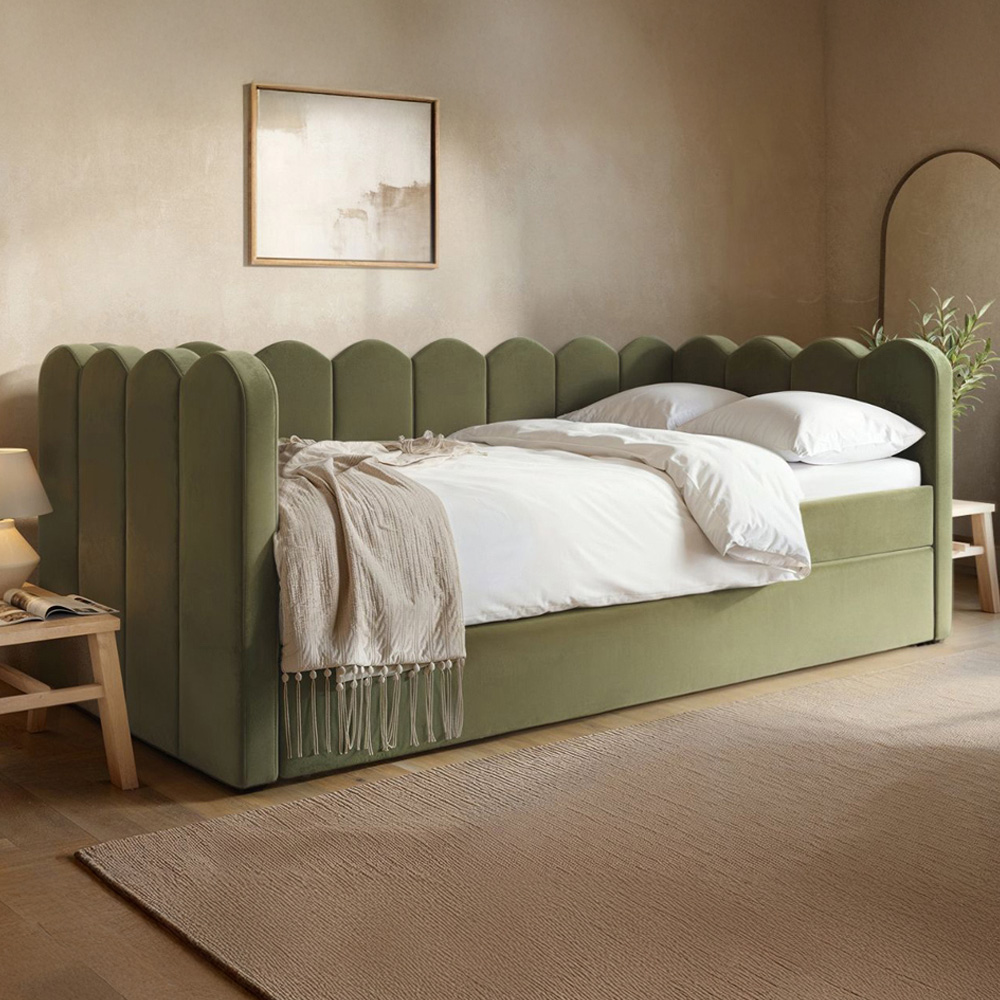 Portland Single Grey Velvet Tufted Day Bed with Trundle