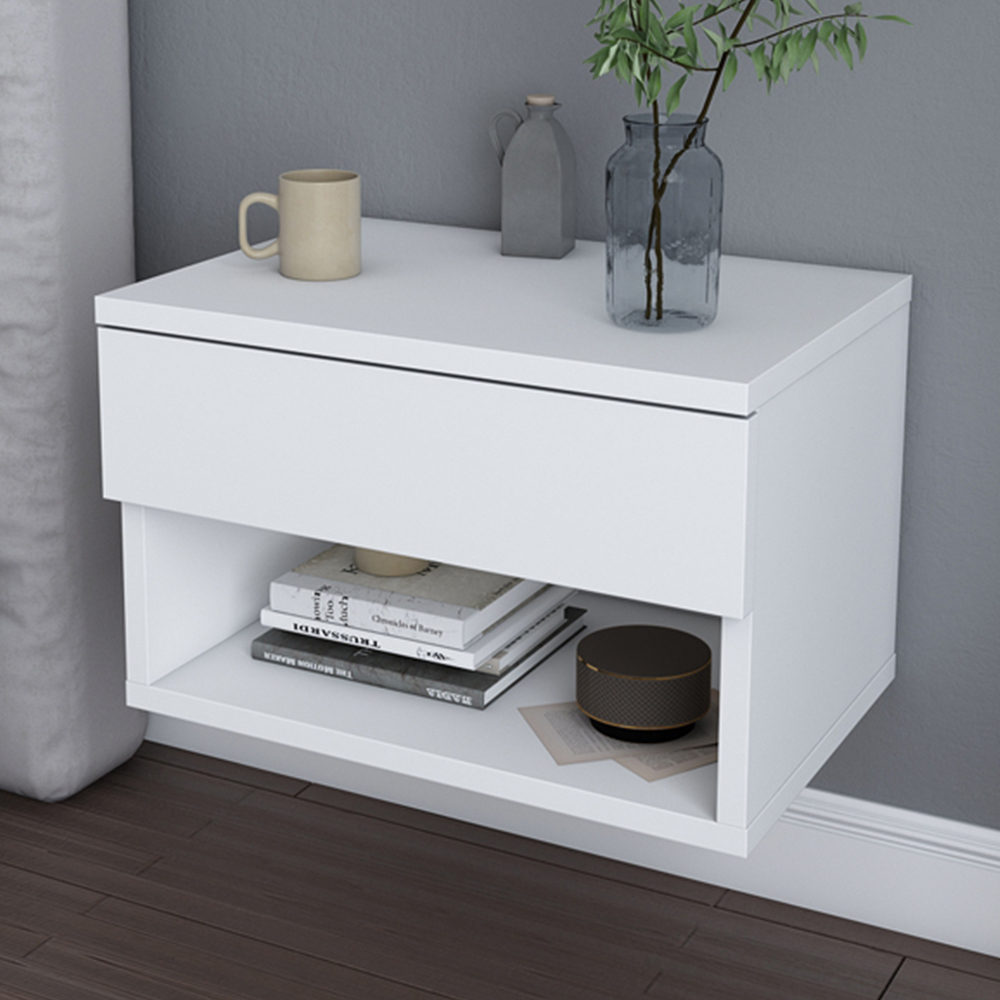 Decorotika Anel White Single Drawer Wall Mounted Bedside Table