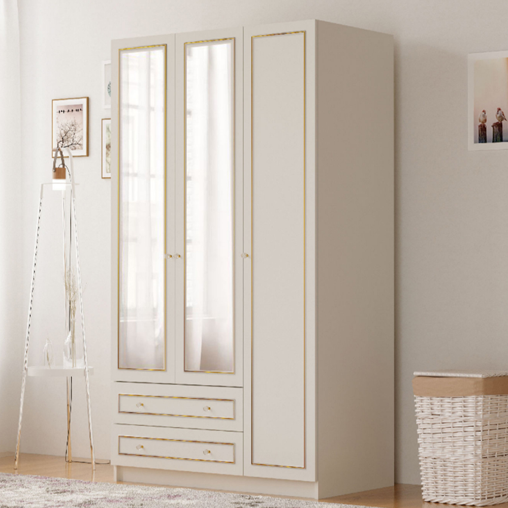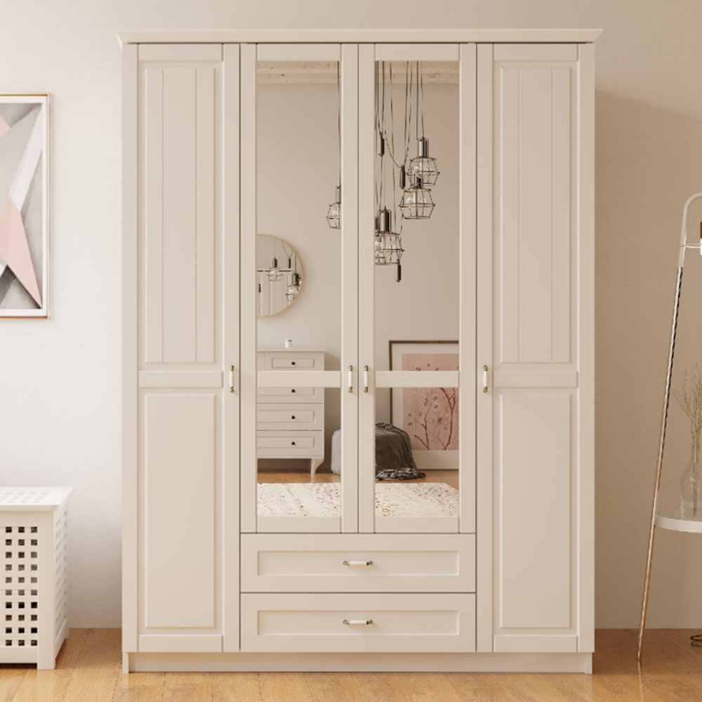 Evu MAISON 4 Door 2 Drawer White Mirror Wardrobe