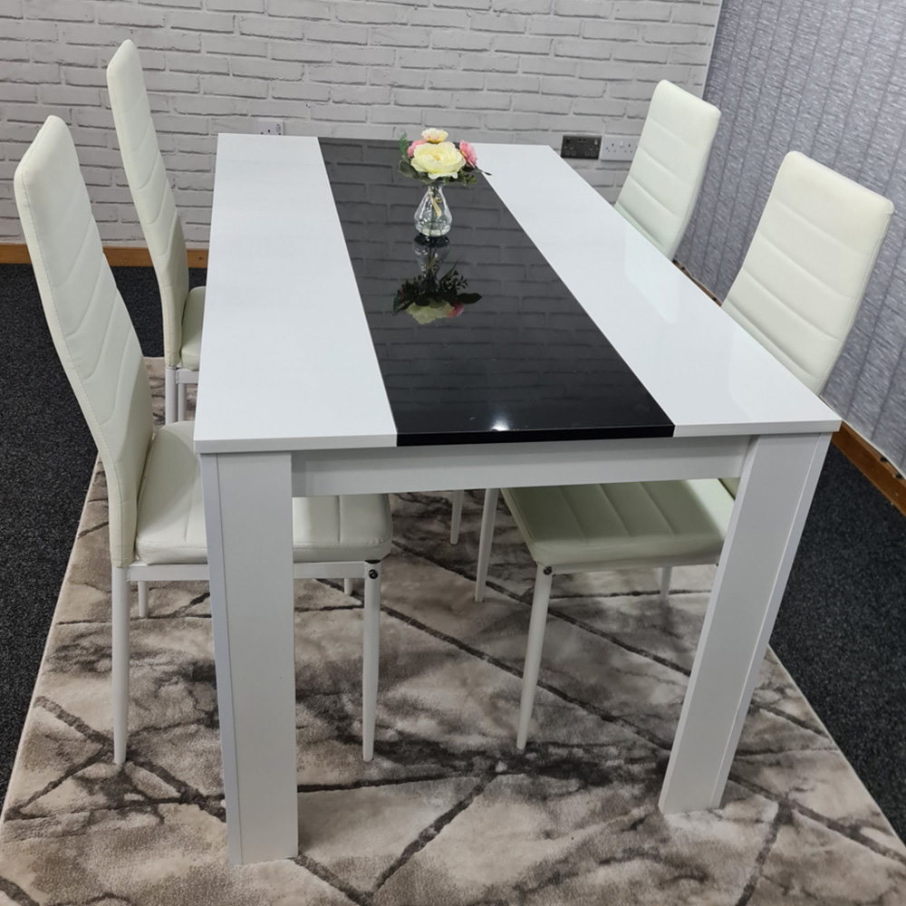 Portland Leather and Wood 4 Seater Dining Set White and Black