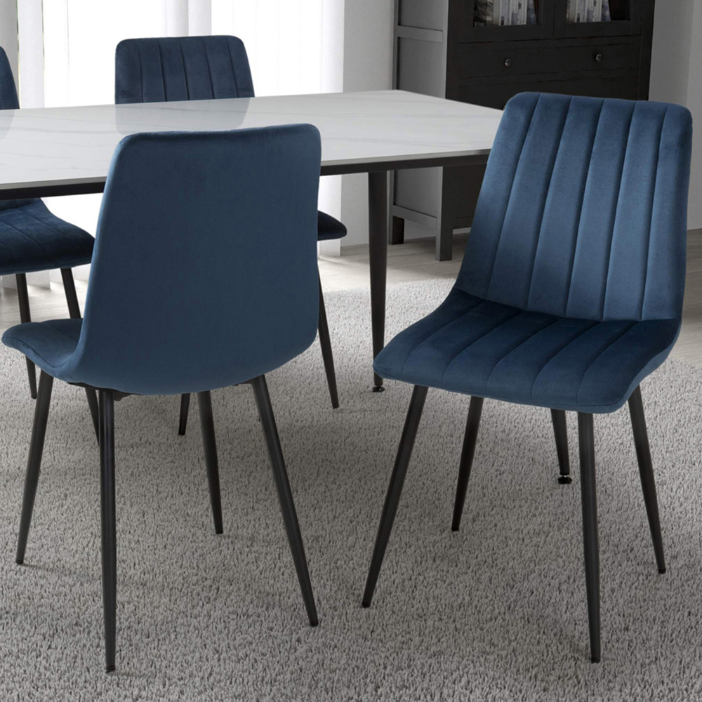 Madison Set of 4 Blue Brushed Velvet Dining Chair