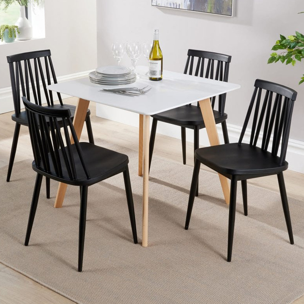 Comfy Living 4 Seater White Square Dining Table Set with White Chairs