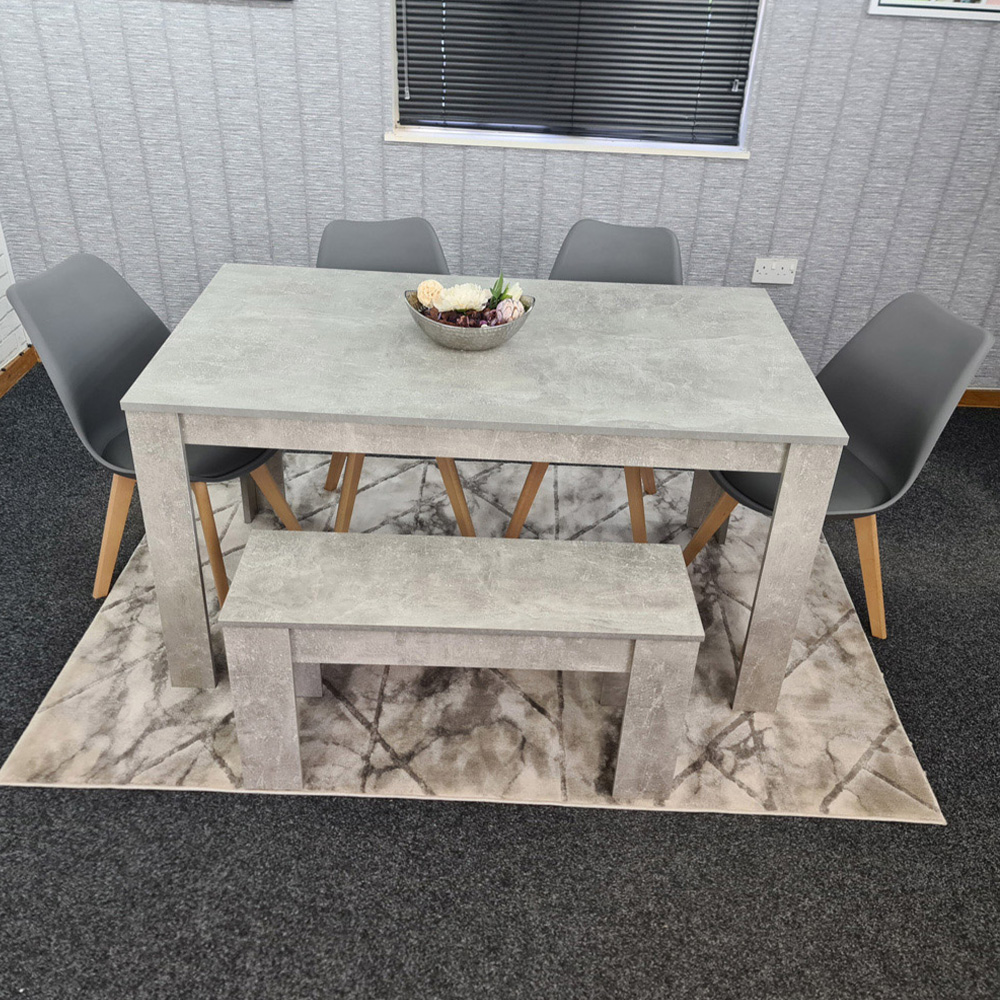 Portland 4 Seater Dining Set Stone Grey Effect and Grey