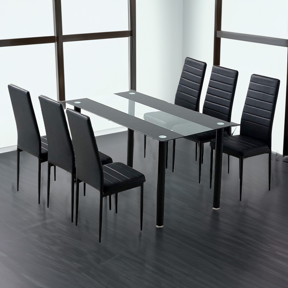 Malika 6 Seater Square Dining Table Set White Oak and Black