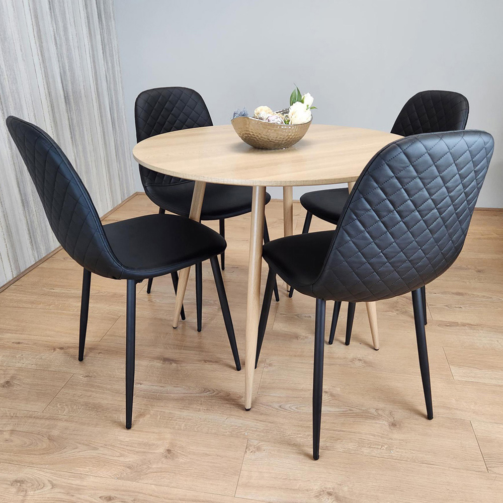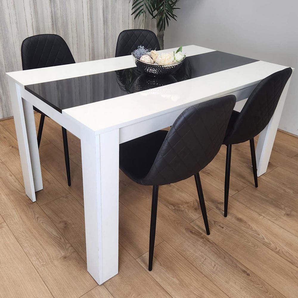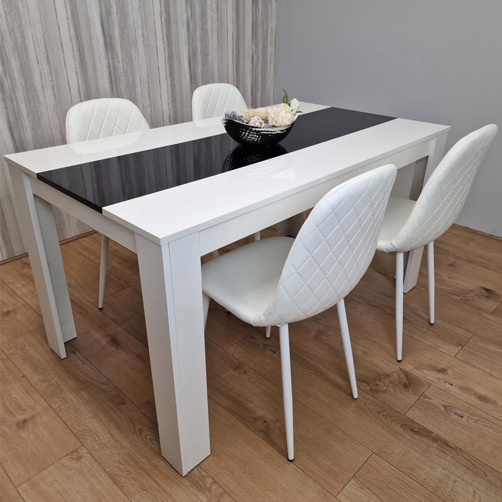 Portland Leather and Wood 4 Seater Dining Set White and Black