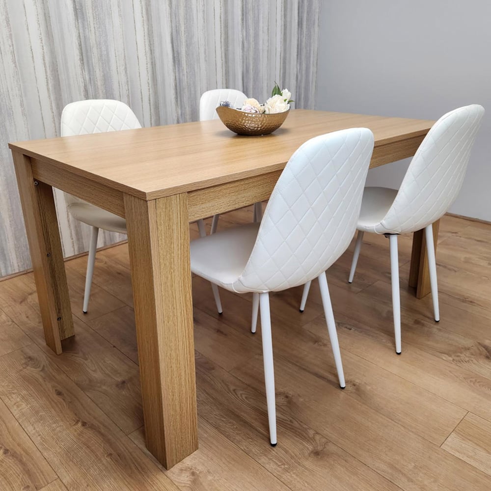Portland 4 Seater Plastic and Leather Dining Set Wood Effect and Cream