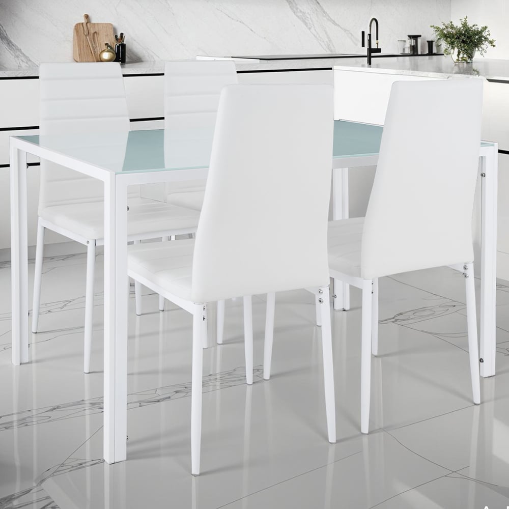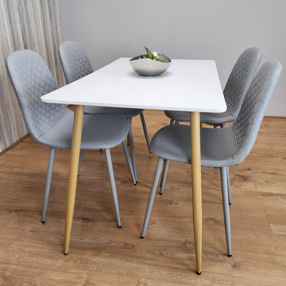 Portland 4 Seater Faux leather Dining Set White and Grey