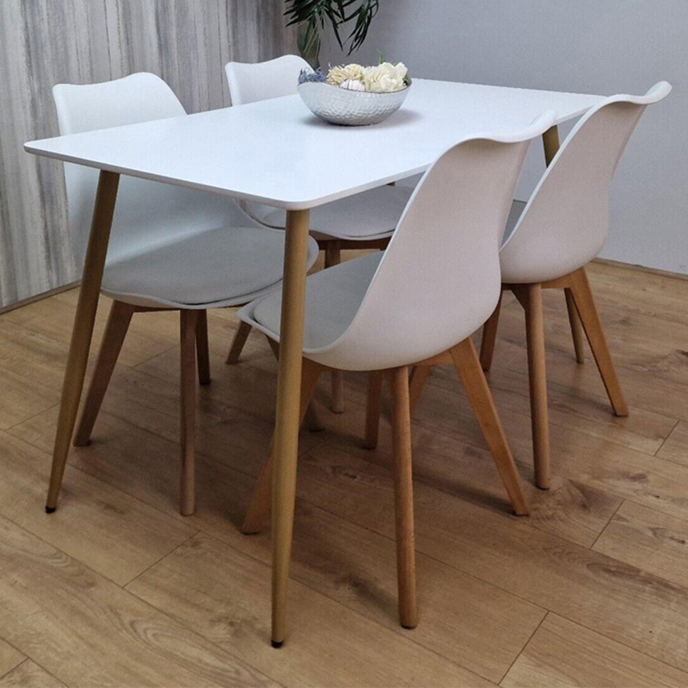 Portland 4 Seater Faux leather Dining Set White and Cream