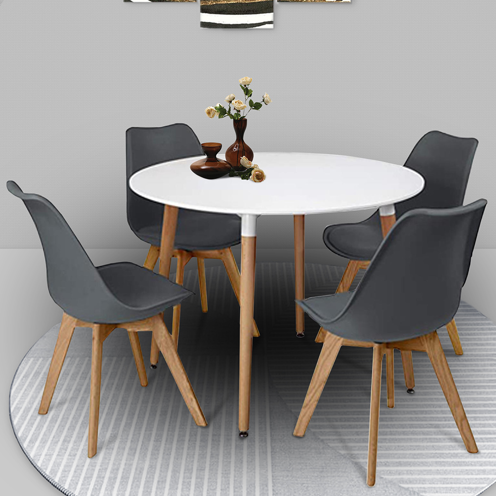 Kosy Koala 4 Seater Wooden Dining Table Set Dark Grey and White