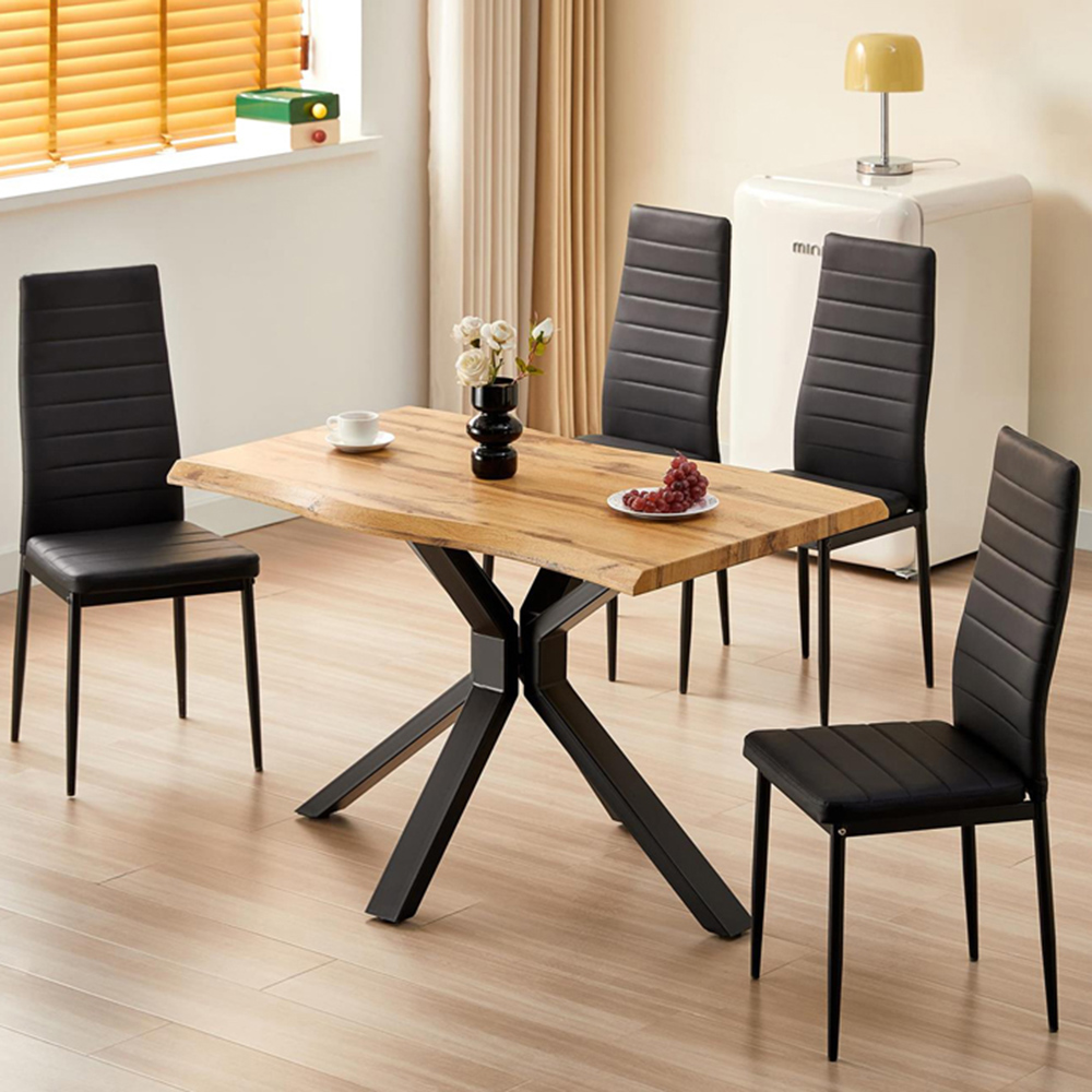 Portland 4 Seater Leather Dining Set Wood Effect and Black