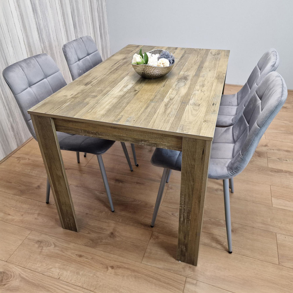 Portland Velvet 4 Seater Dining Set Stone Grey and Grey