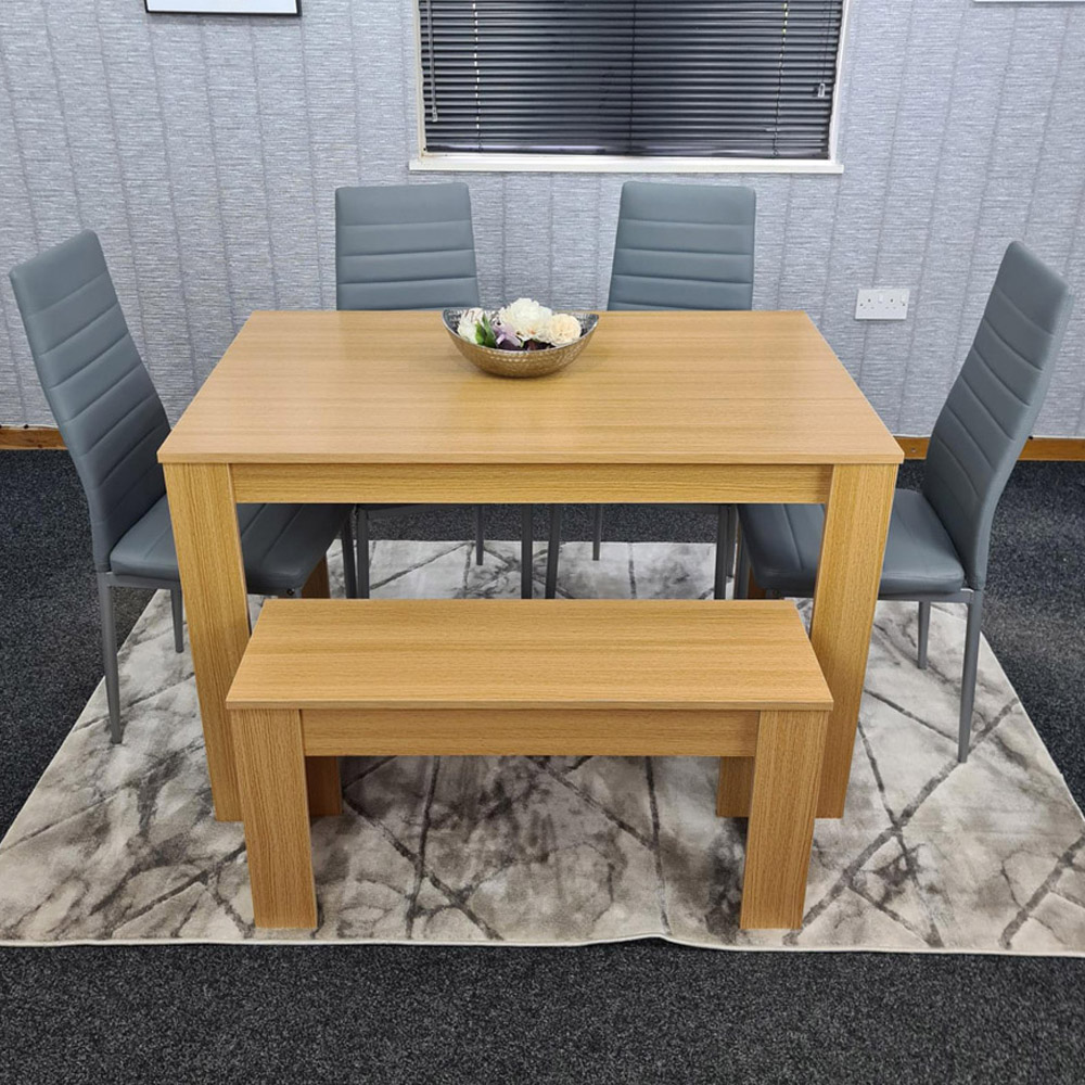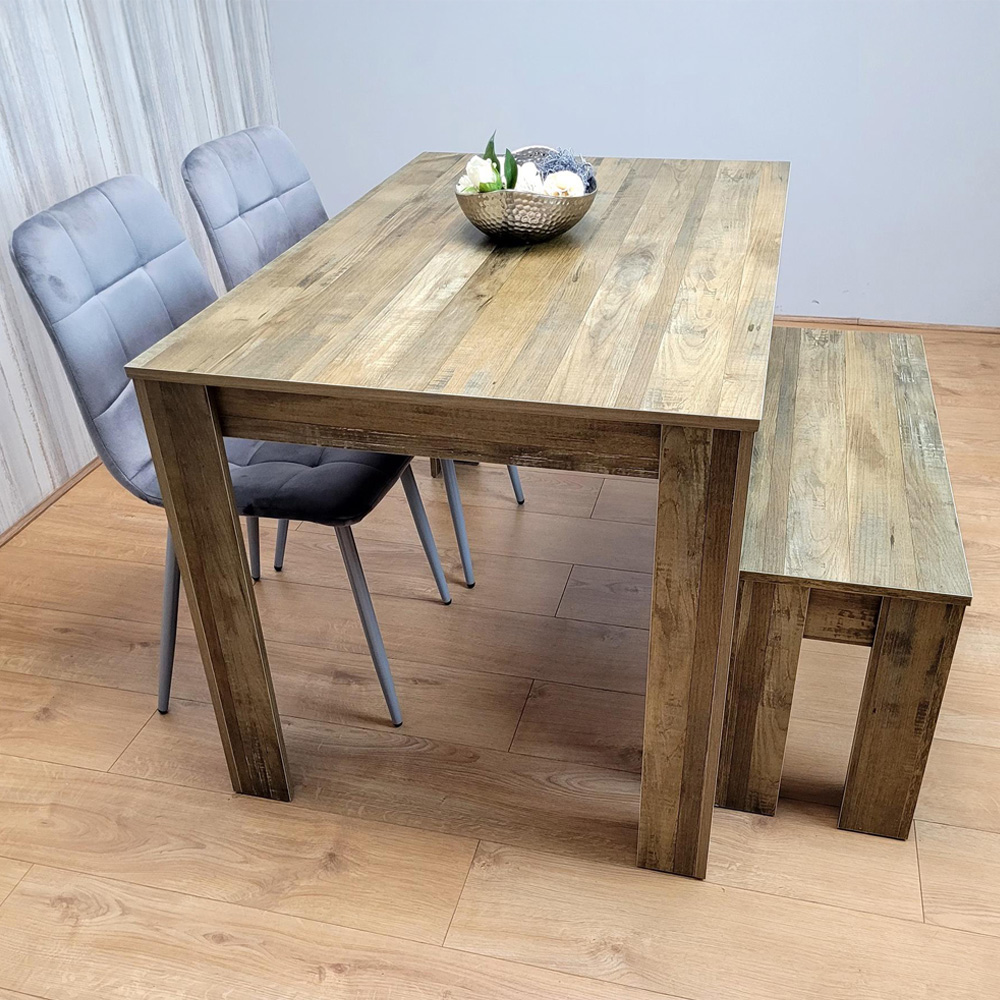 Portland Velvet 6 Seater Dining Set with Bench Stone Grey and Grey