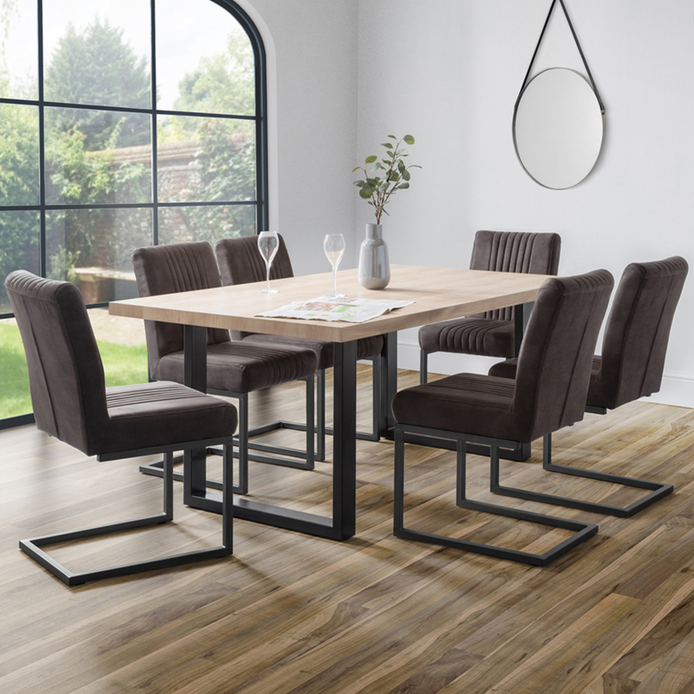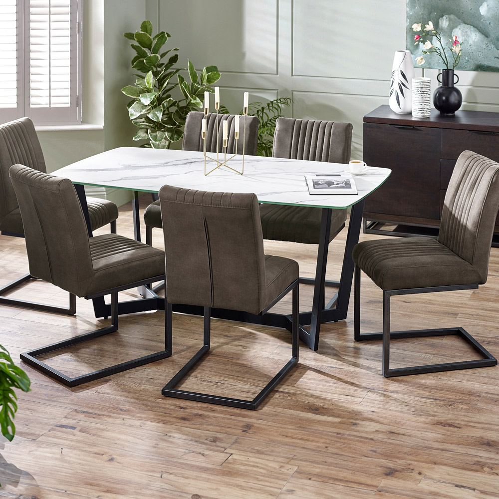 Portland Leather 6 Seater Dining Set Stone Grey and Grey