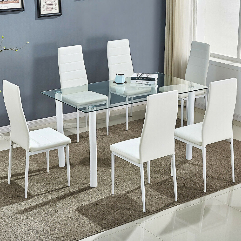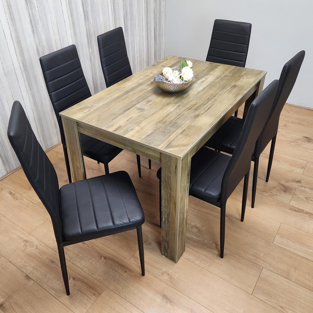Portland Leather and Wood 6 Seater Dining Set White and Black