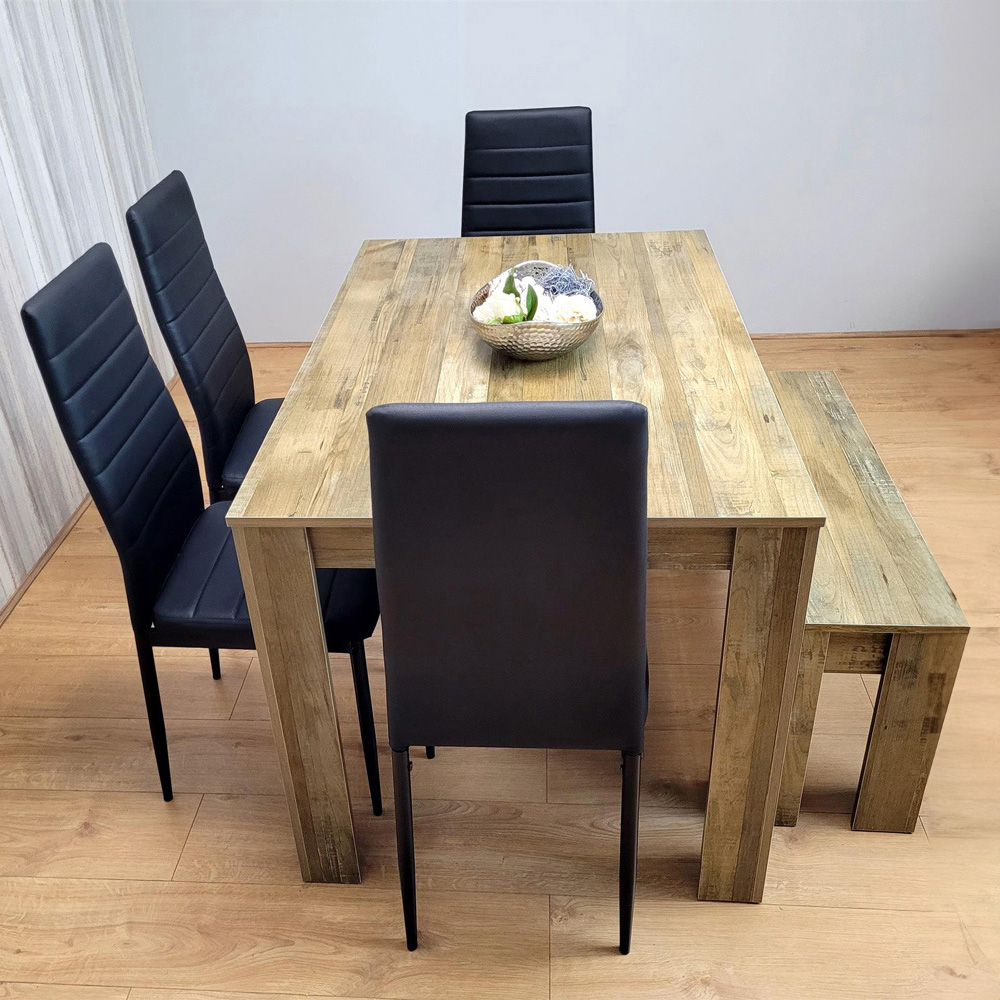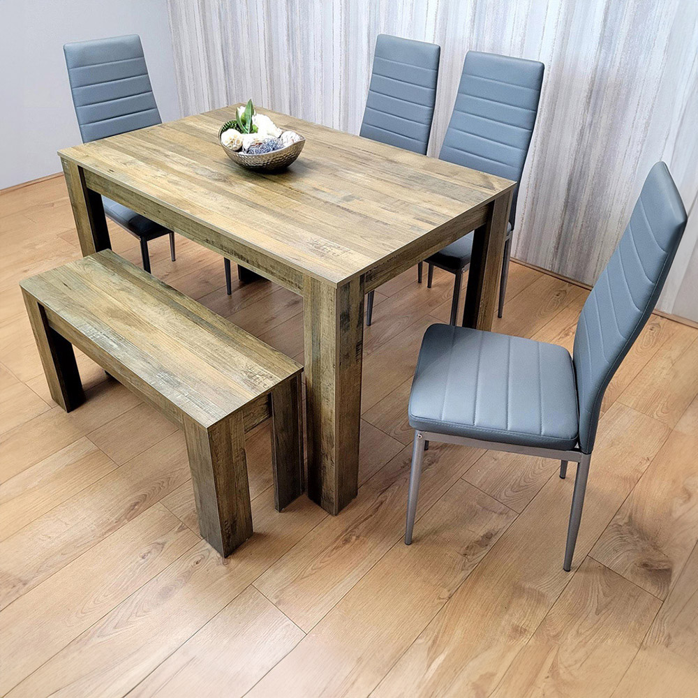 Portland 4 Seater Dining Set Stone Grey Effect and Grey
