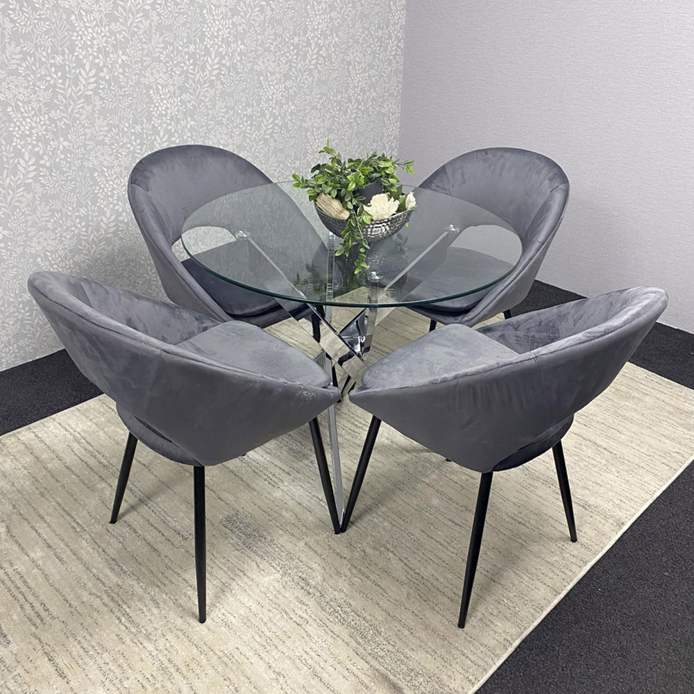 Portland Rocco 4 Seater Round Glass Velvet Dining Set Grey