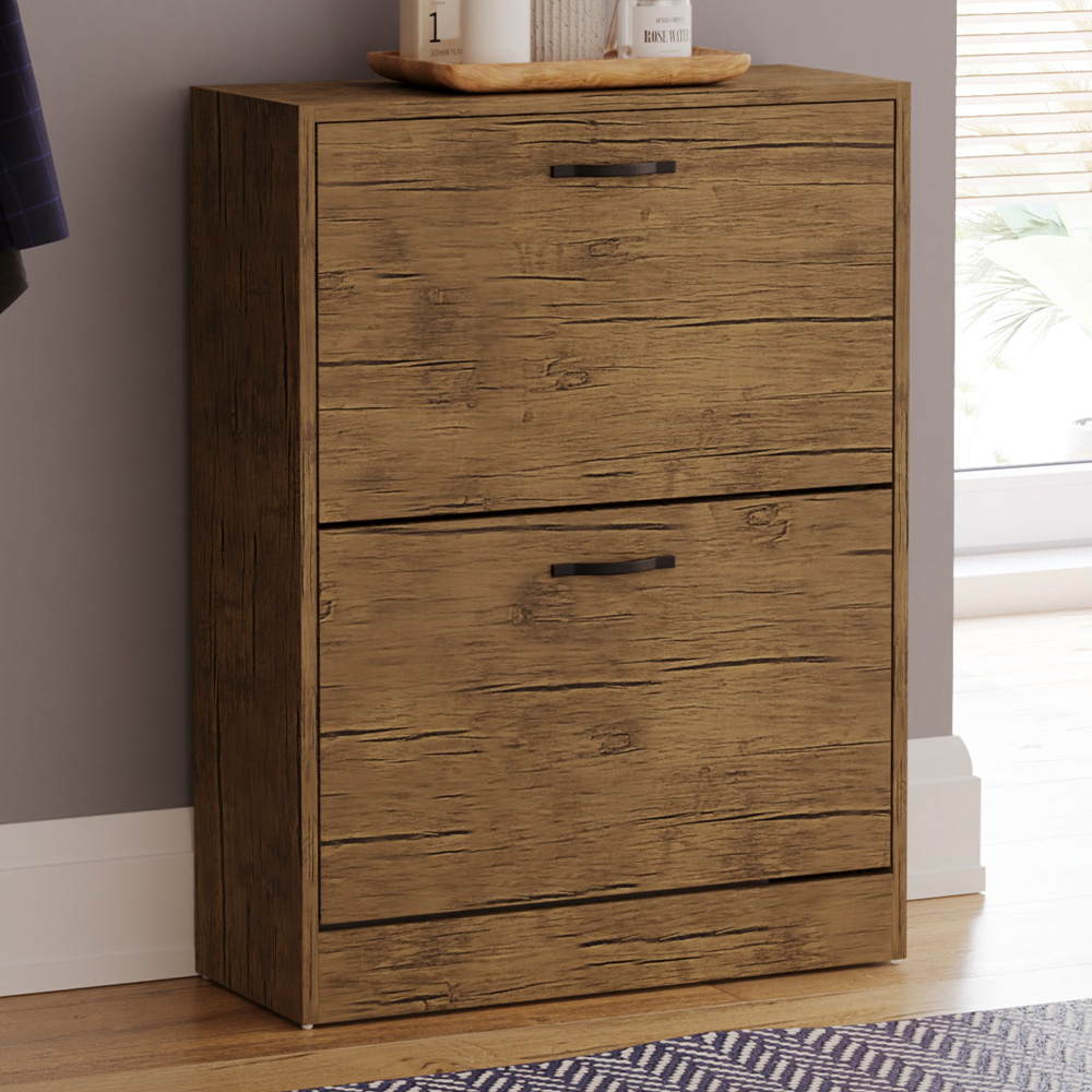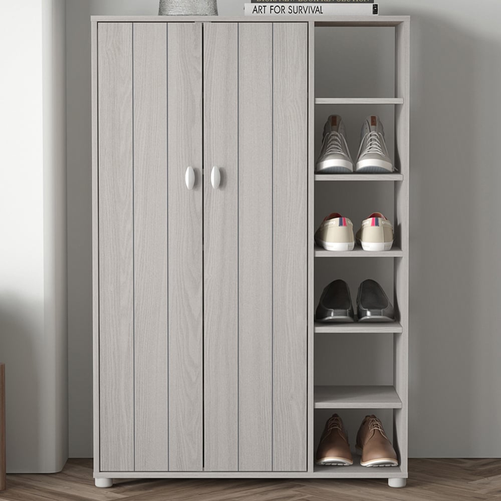 GFW Bideford Grey Oak 2 Door 6 Shelf Shoe Cabinet