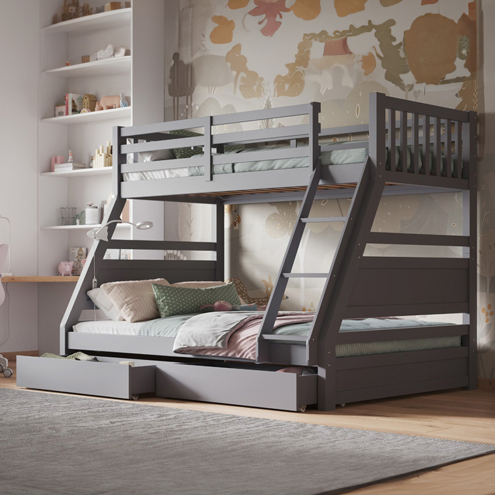 Flair Ollie Triple Sleeper Grey Wooden 2 Drawer Bunk Bed