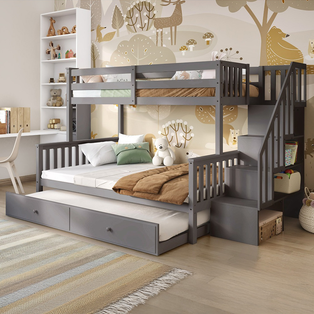 Flair Tag Grey Staircase Bunk Bed with Trundle