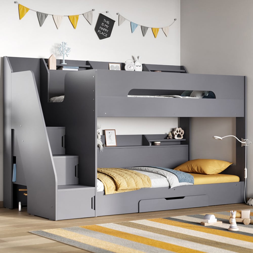Flair Slick Staircase Grey Bunk Bed with Storage