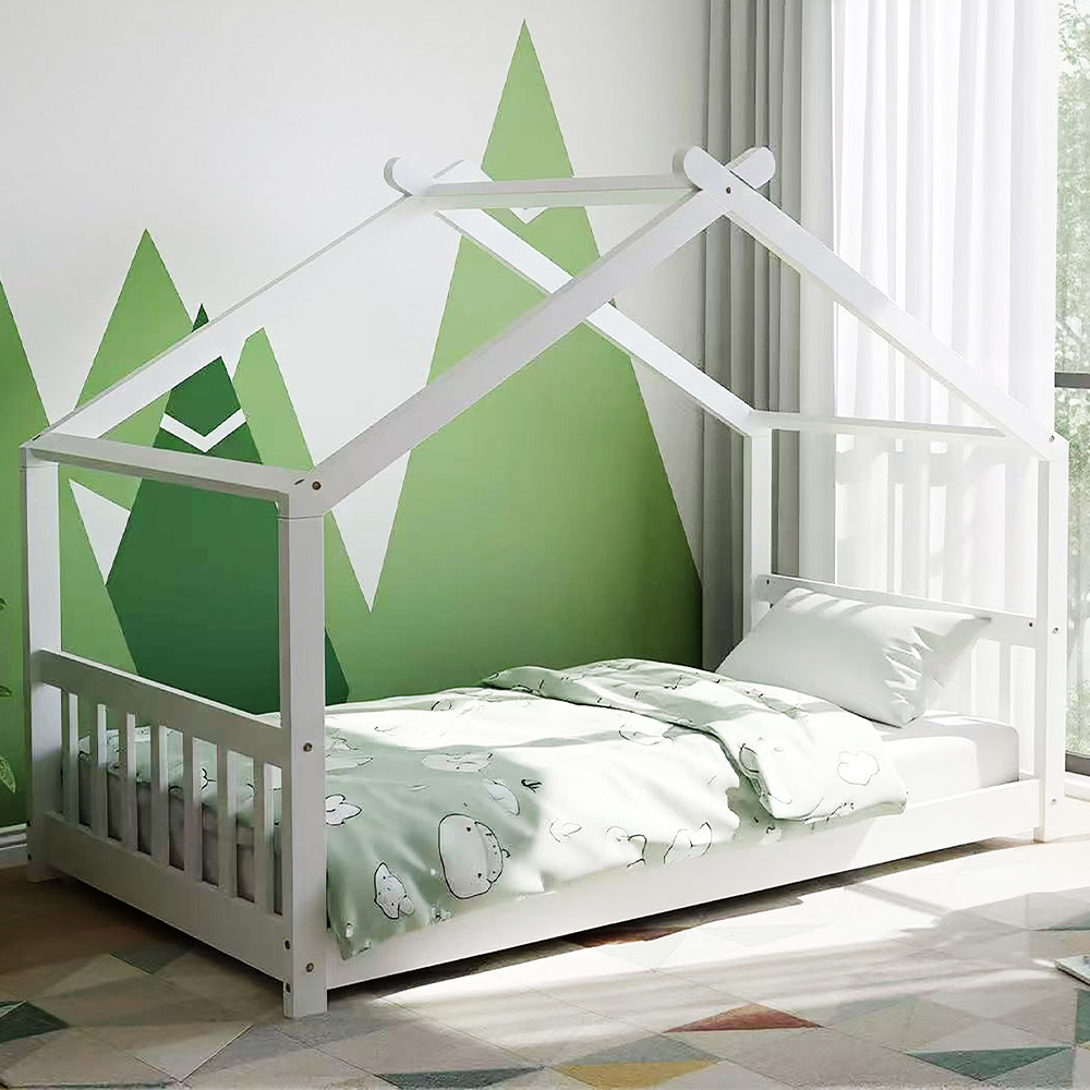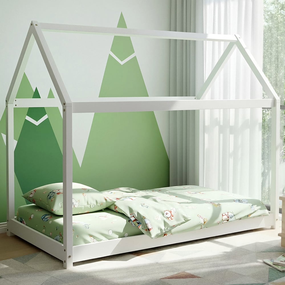 Flair Ted Wooden White Play House Bed Frame with Storage