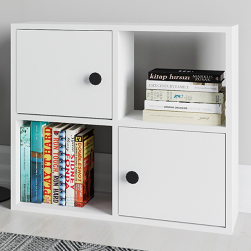 Evu MAISON 2 Door 6 Shelf White Bookcase
