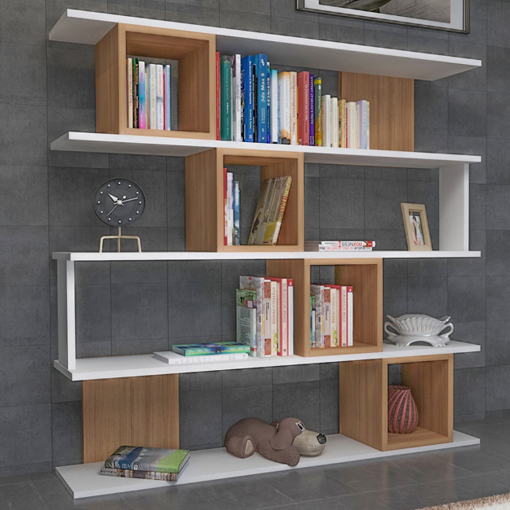 Decorotika Wind White and Walnut 5 Tier Geometric Open Bookcase