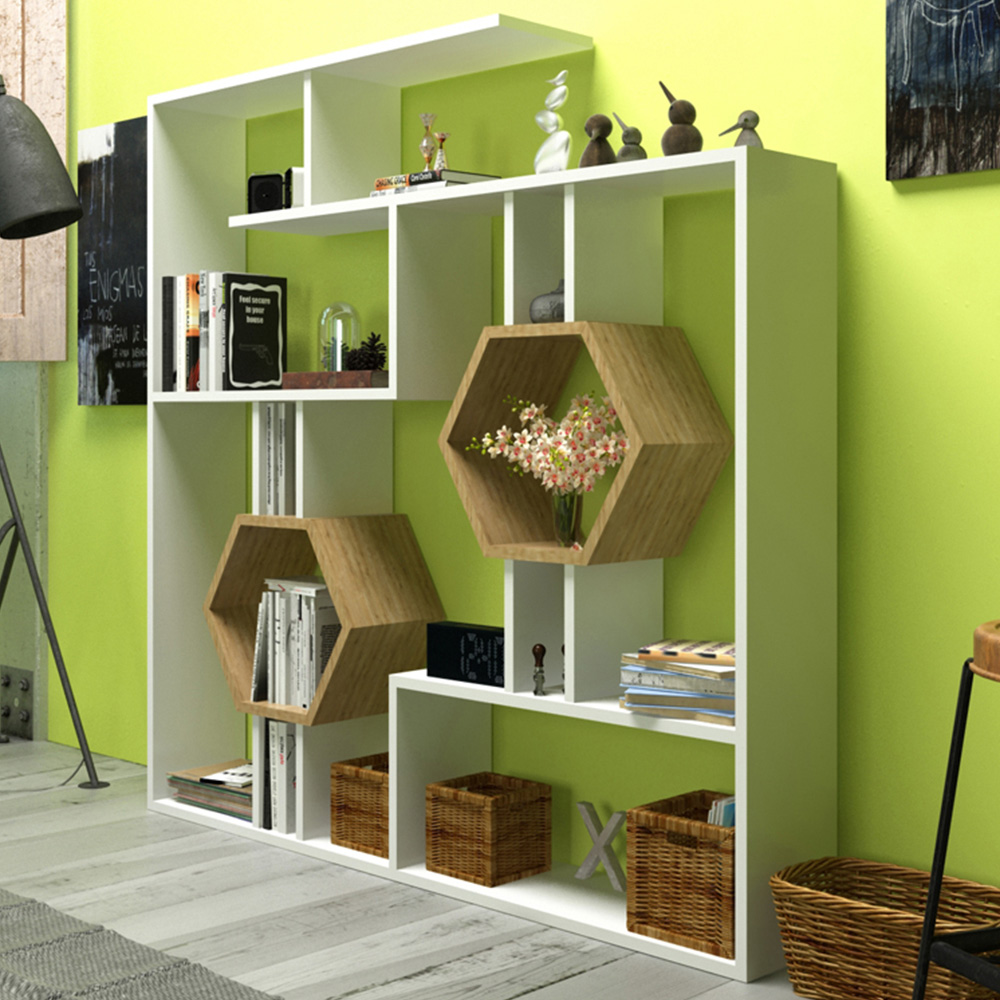 Decorotika Tamara Geometric Honeycomb White and Oak Bookshelf
