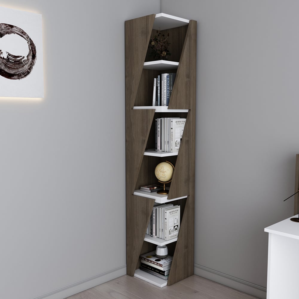 Decorotika Arrow Walnut White 6 Tier Corner Bookshelf