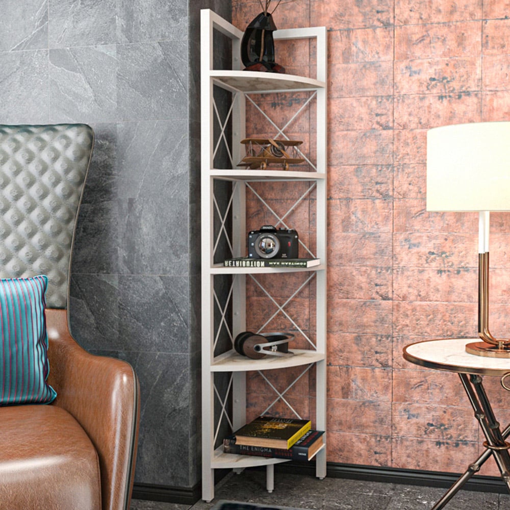 Decorotika Remo 5 Tier White Corner Bookshelf with Metal Frame