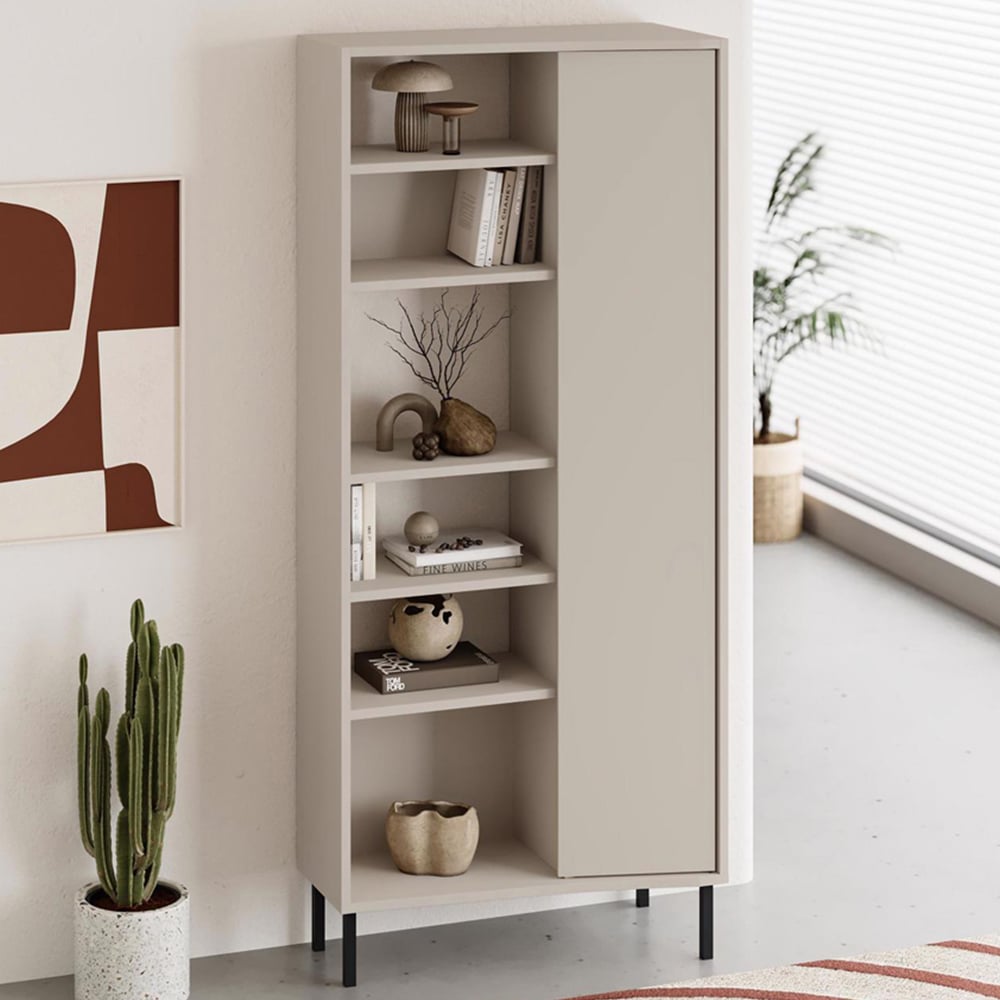 FWStyle Sandstone Single Door 6 Shelf Curved Modern Bookcase