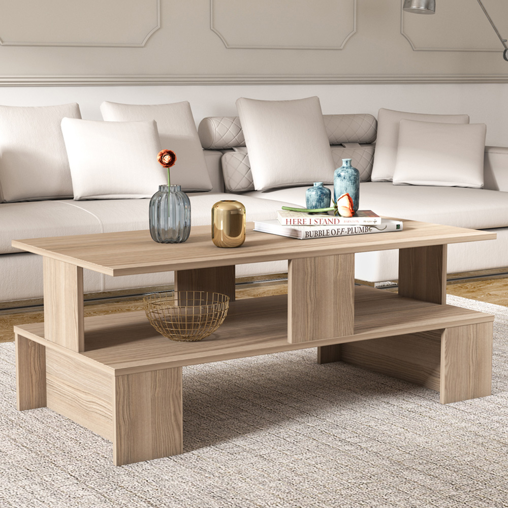 Large rectangular and round coffee tables provide plenty of surface area that can you style up with magazines, plants, candles, or flowers in a chic vase. Narrow and smaller sizes with built-in storage and drawers can help to keep your space tidy and clutter-free if you don’t have much room to work with.
