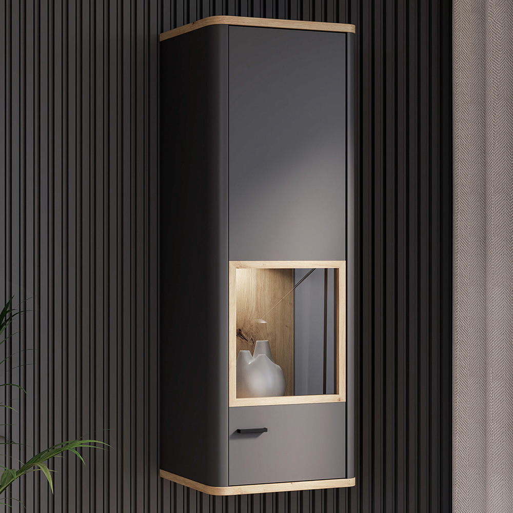 Florence High Rock 4 Door Matt Black and Riviera Oak Display Cabinet