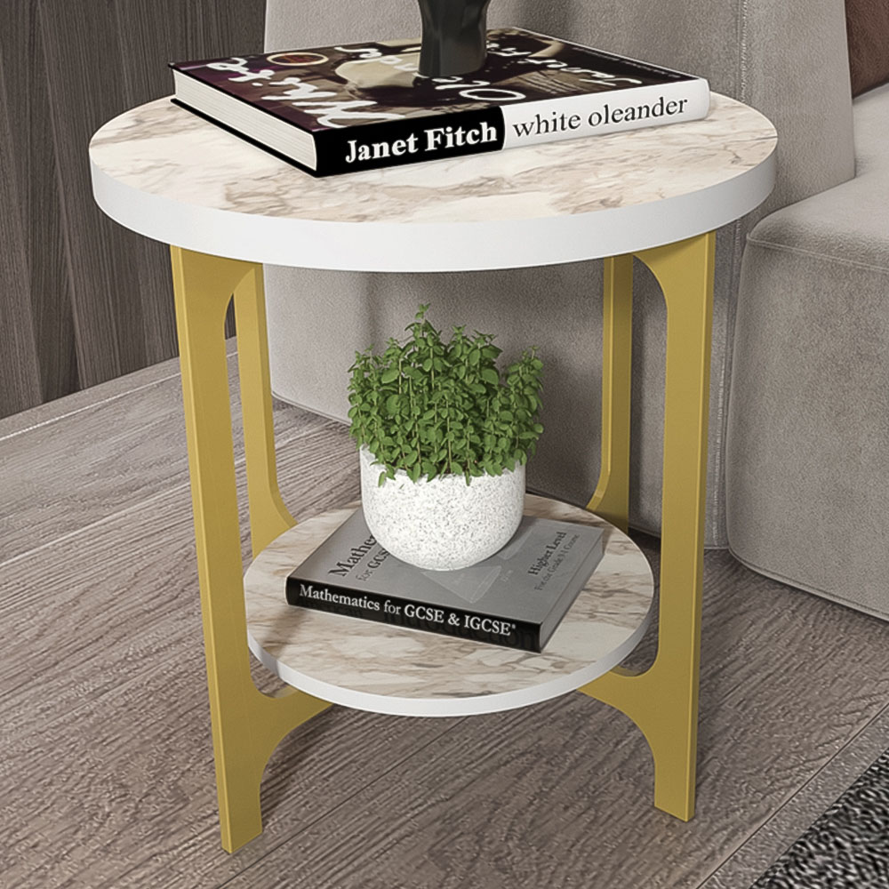 Julian Bowen Scala Gold and White Marble Top Lamp Table