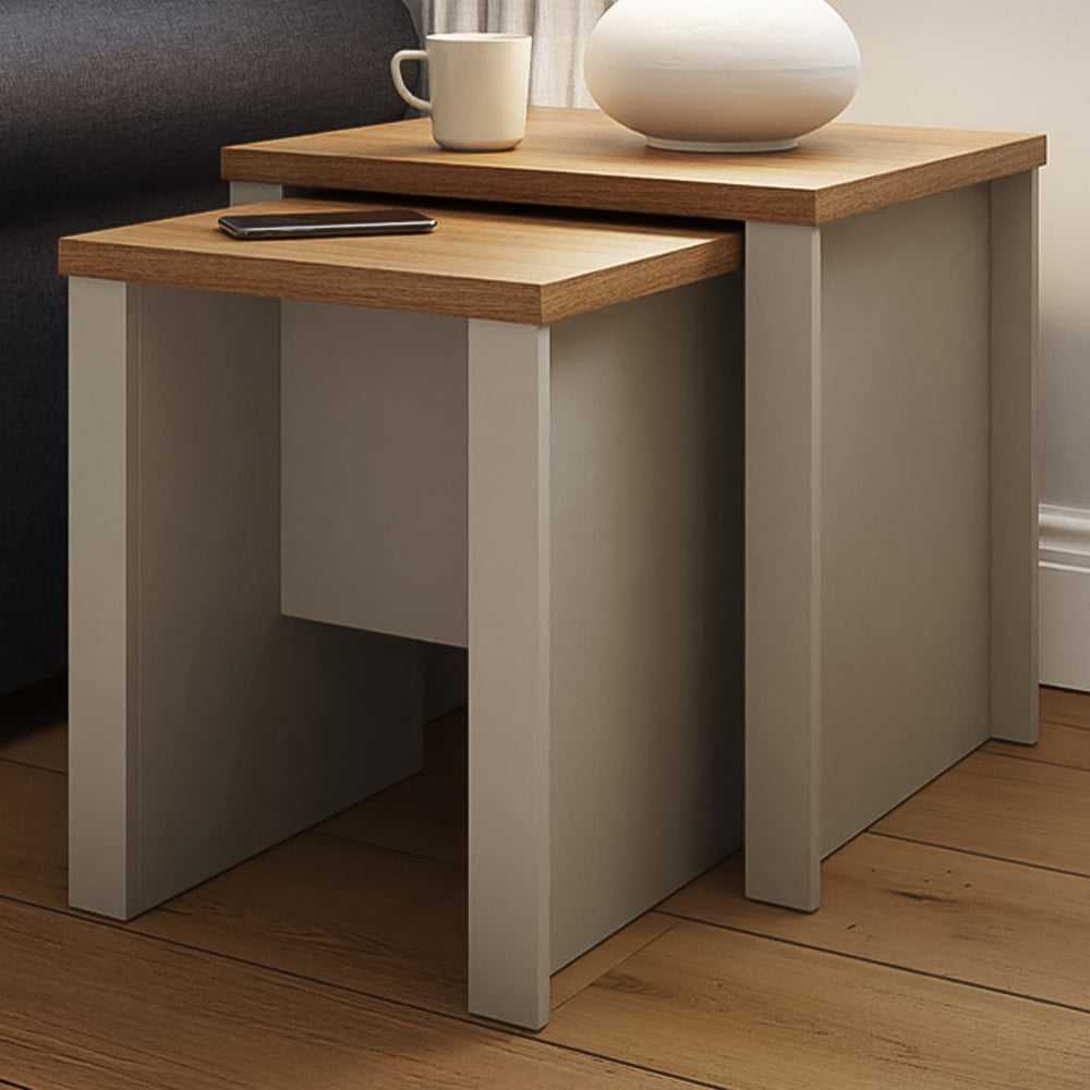 Seconique Bordeaux Pebble Grey and Oak Nest of Tables Set of 2