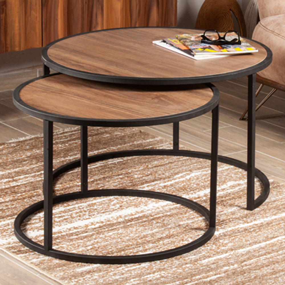 Decorotika Tambur 2 Piece Walnut and Black Nesting Coffee Table Set