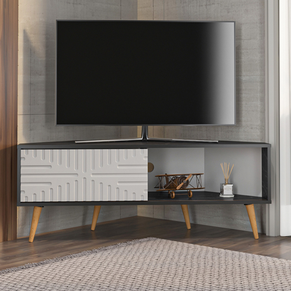 Decorotika Comero Oud Black Single Door 2 Shelf Corner TV Unit