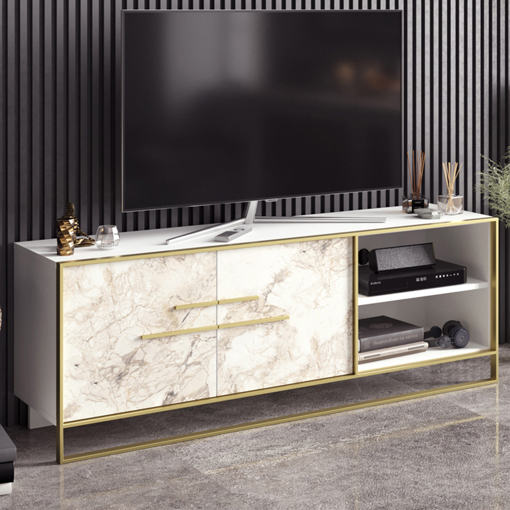 Decorotika Polka 2 Door White Marble and Gold TV Unit