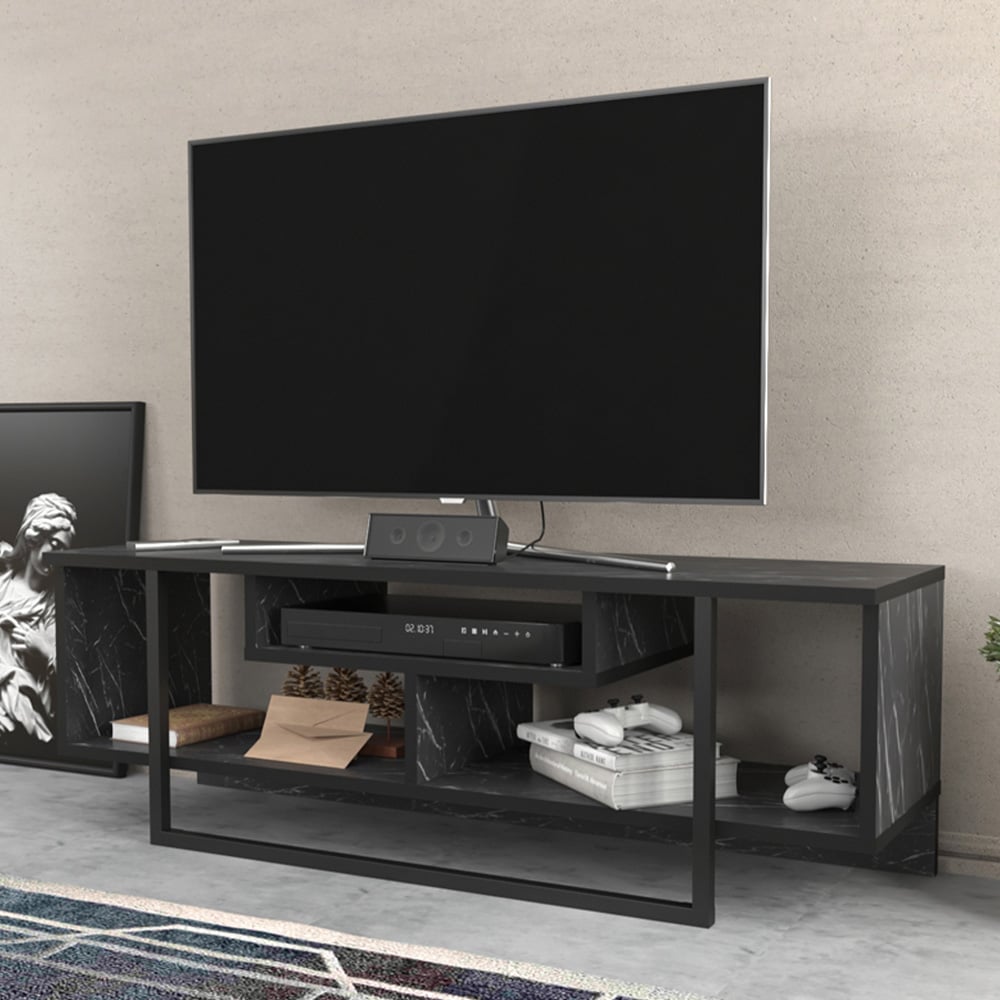 Decorotika Asal Black Marble Effect and White 3 Shelf TV Unit