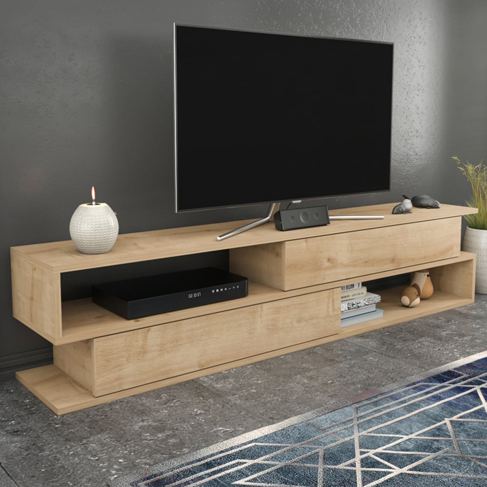 Decorotika Cortez 2 Shelf Oak TV Unit