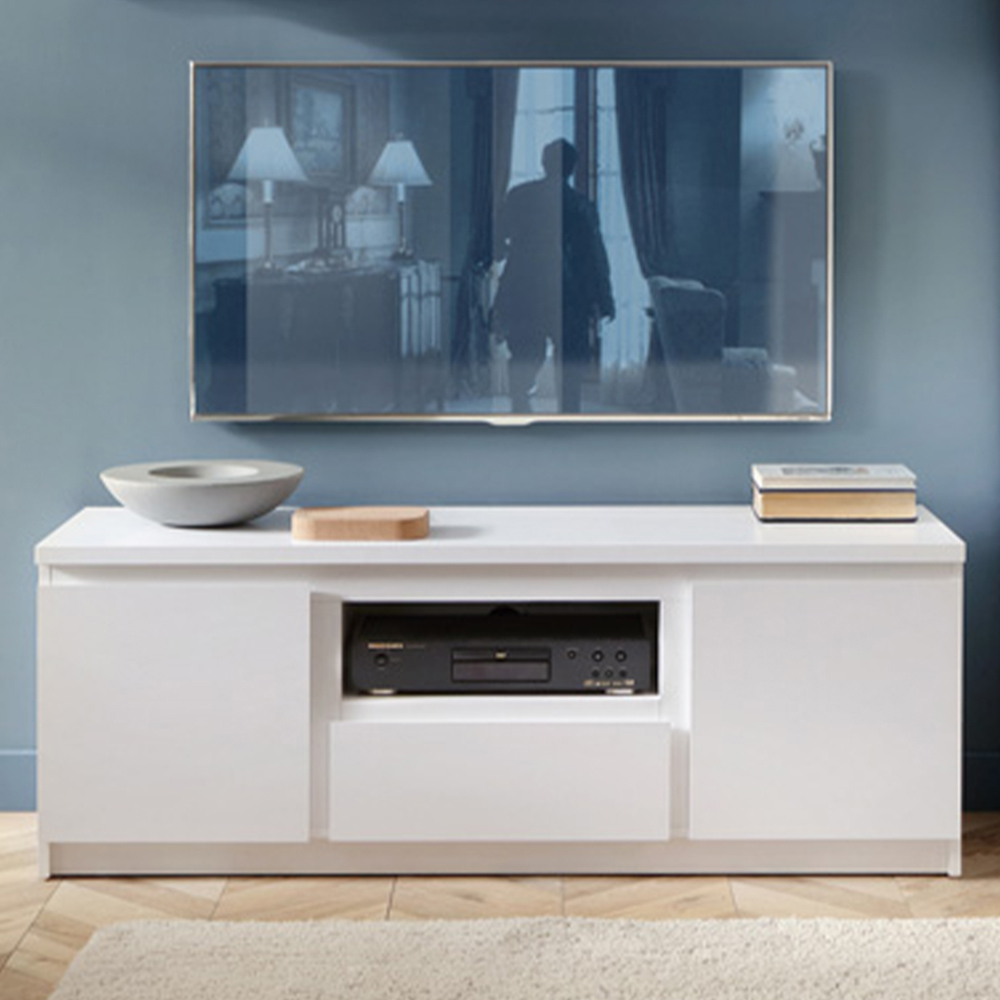 Florence Fribo 2 Door Single Drawer White Wide TV Cabinet
