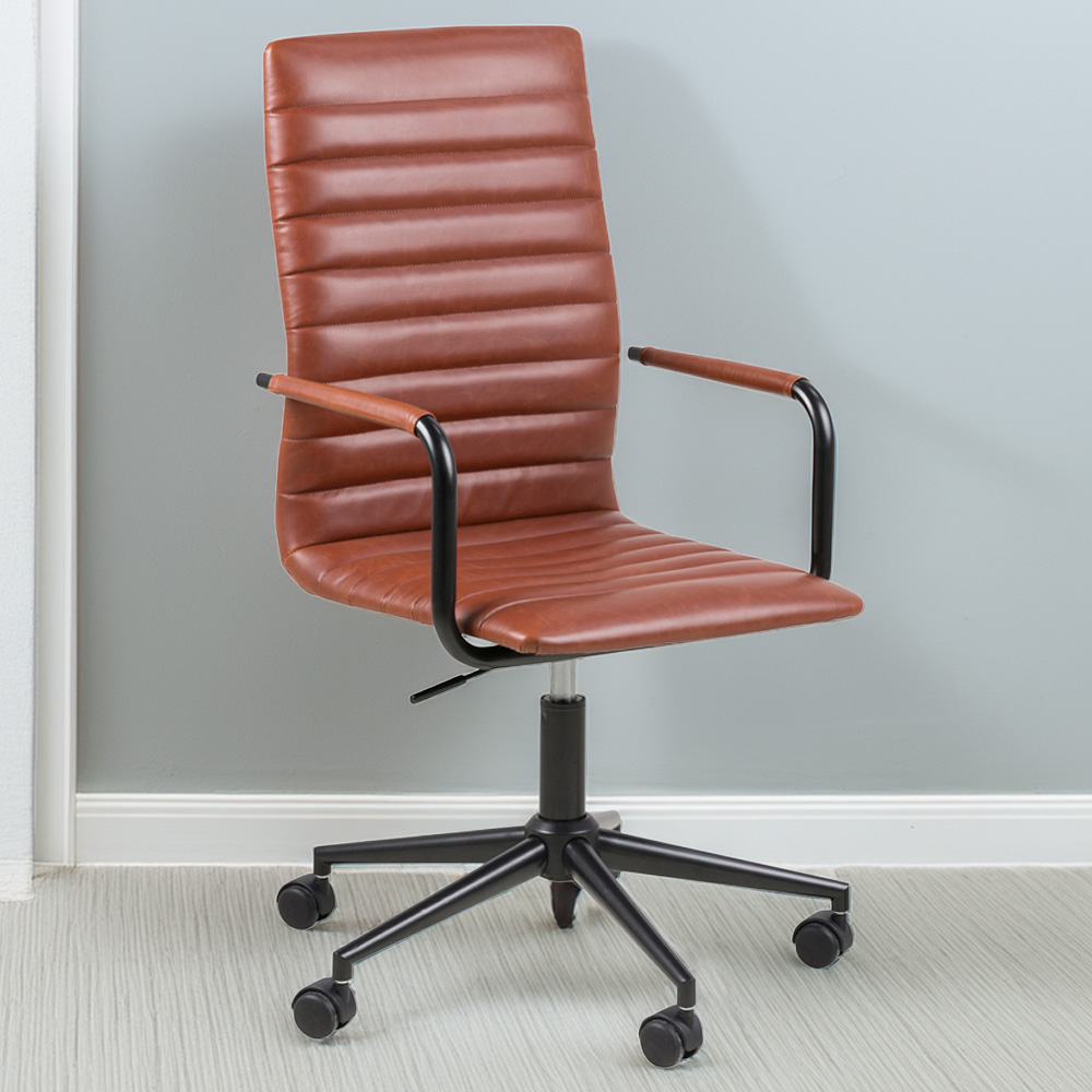 Furniturebox Brooker Brown Faux Leather Office Swivel Chair