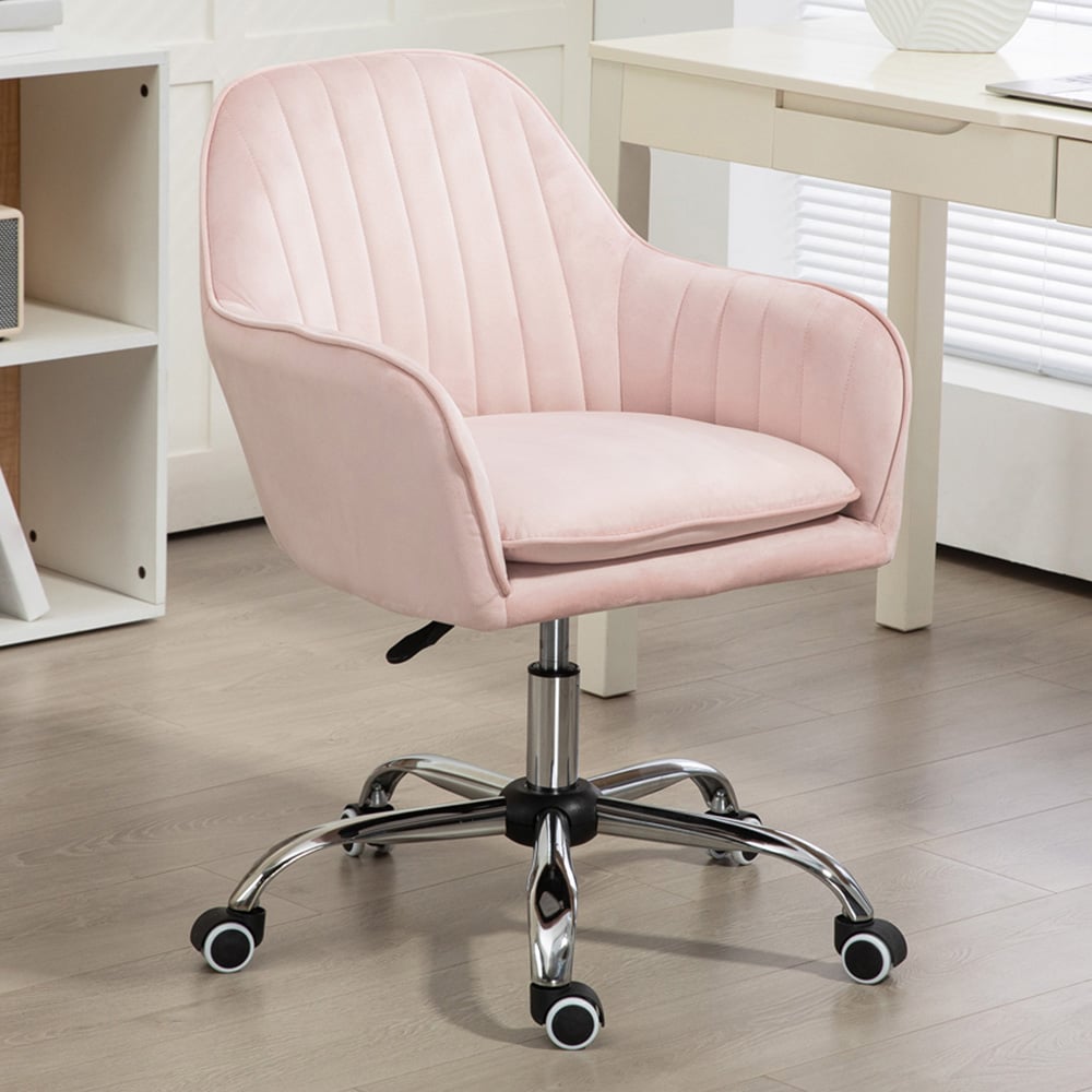 Furniturebox Courtez Pink and Silver Velvet Office Swivel Chair