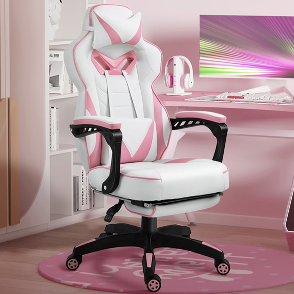 Portland Pink and White PU Leather Recliner Gaming Chair