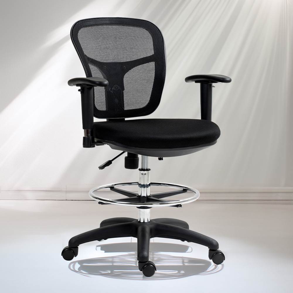 Portland Black Drafting Stool Chair with Adjustable Armrest
