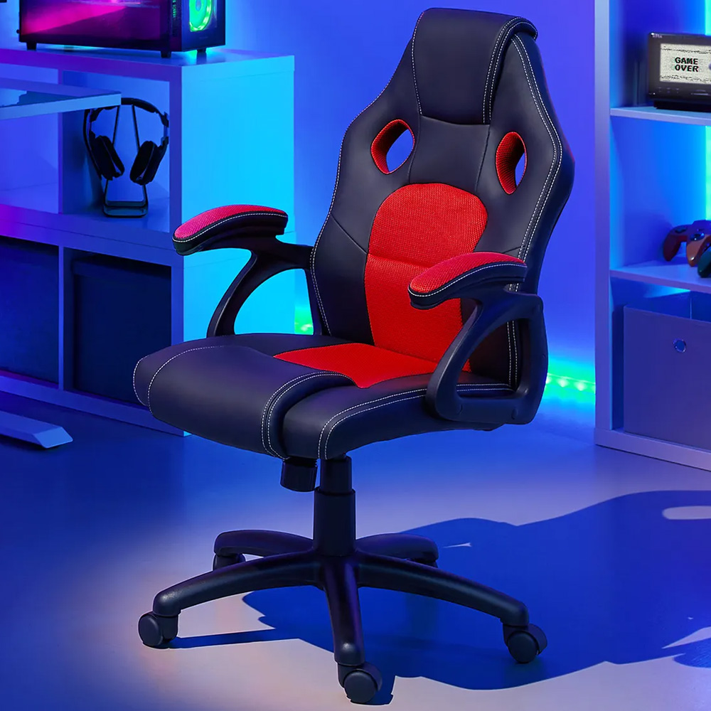 TTAP Monaco Faux Leather Black and Red Swivel Gaming Chair