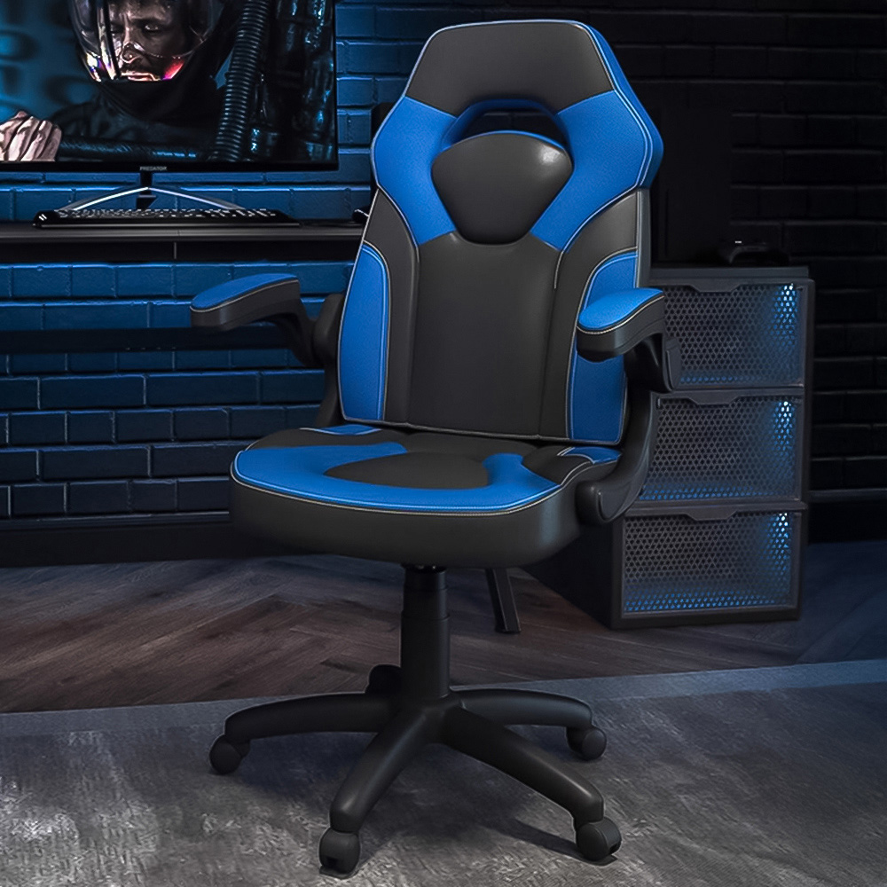 TTAP Monaco Faux Leather Black and Blue Swivel Gaming Chair