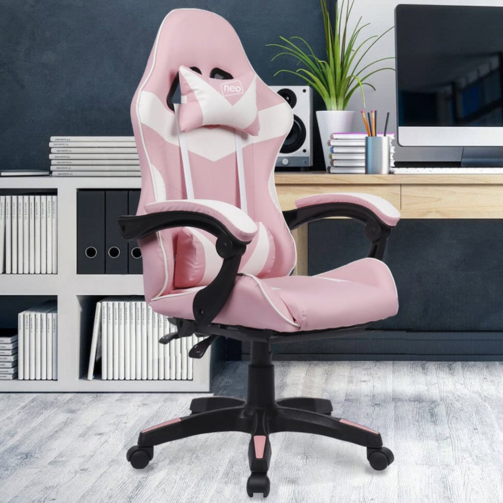 Portland Pink and White PU Leather Recliner Gaming Chair