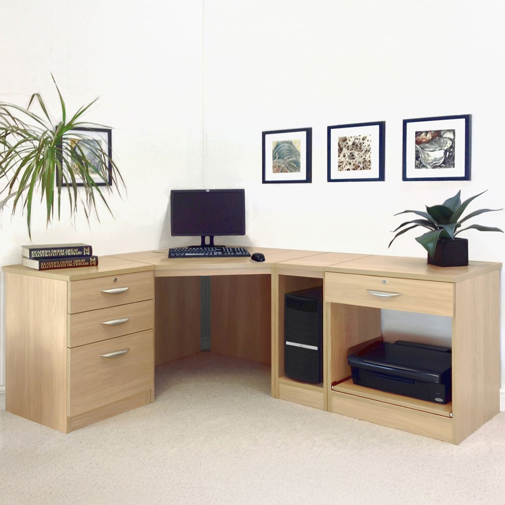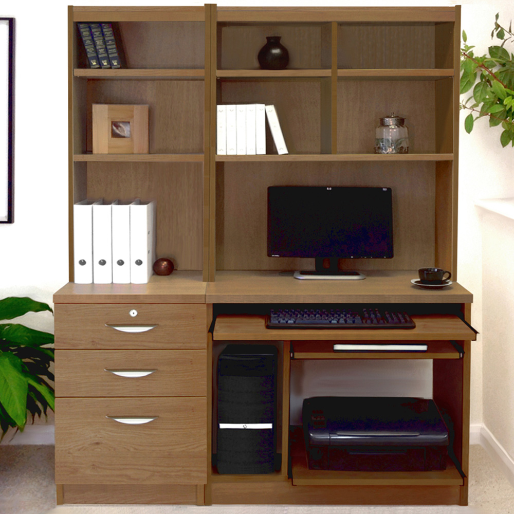 Baumhaus Mobel 2 Door 2 Drawer Large Hidden Office Desk Oak