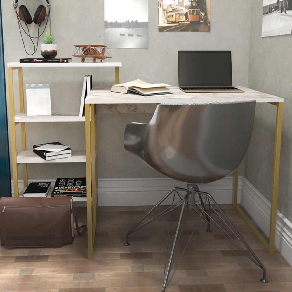 Decorotika Rino 4 Shelf Gold and White Marble Effect Writing Desk